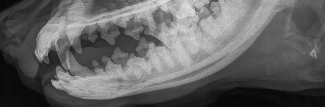 Około 10-letnia sterylizowana suczka rasy cocker spaniel trafiła do przychodni z niebolesną, fluktującą zmianą u podstawy ucha. W badaniu klinicznym nie stwierdzono odchyleń od normy, obwodowe węzły chłonne były niepowiększone, krtań niereaktywna, osłuchowo brak zmian, temperatura ciała również bez zmian. Po antybiotykoterapii (amoksycylina z kwasem klawulanowym w dawce 20 mg/kg dwa razy dziennie przez 10 dni) stan psa wracał do normy, jednak po kilku dniach od zakończenia terapii objawy nawracały. Z wywiadu wiadomo, że pies mógł spożywać kości lub patyki. Okolica zmiany była niebolesna, nie towarzyszył jej obrzęk. Pacjentka wykazywała niechęć do jedzenia. Podczas ba...