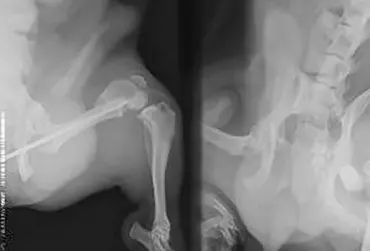 Opisywany przypadek dotyczy 4-letniego psa, samca, rasy pekińczyk. W innym zakładzie leczenia zwierząt wykonano zabieg osteosyntezy lewej kości udowej za pomocą pojedynczego gwoździa śródszpikowego. Pacjent trafił do przychodni w celu konsultacji ortopedycznej z powodu braku efektów leczenia. Badanie radiologiczne uwidoczniło przebudowę kości udowej oraz wytworzenie stawu rzekomego z miejscu przełomu. Wykonano zabieg osteosyntezy z użyciem płyty L blokowanej 2,7 mm oraz przeszczepu istoty gąbczastej z kości ramiennej.